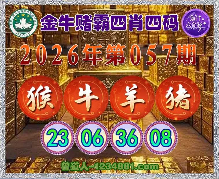 057期:《金牛赌霸》 🌷四肖四码🌷【猴牛羊猪】【23.06.36.08】开:猴23准