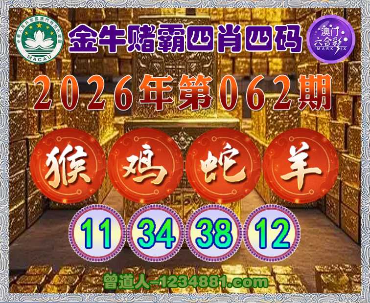 062期:《金牛赌霸》 🌷四肖四码🌷【猴鸡蛇羊】【11.34.38.12】开:00准