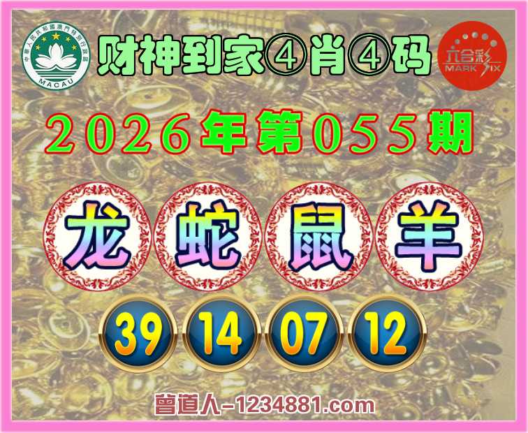 055期:『财神到家』 ♣️④肖④码 ♣️【龙蛇鼠羊】【39.14.07.12】开:蛇14准