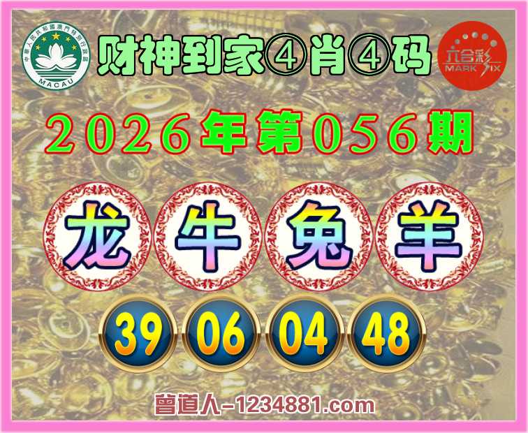056期:『财神到家』 ♣️④肖④码 ♣️【龙牛兔羊】【39.06.04.48】开:羊48准