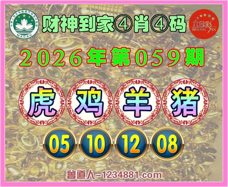 059期:『财神到家』 ♣️④肖④码 ♣️【虎鸡羊猪】【05.10.12.08】开:鸡10准
