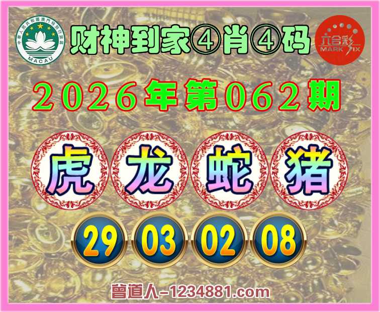 062期:『财神到家』 ♣️④肖④码 ♣️【虎龙蛇猪】【29.03.02.08】开:00准