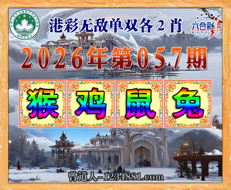 057期:〖港彩无敌〗 ✌️单双各②肖✌️【.鸡.鼠.兔】开:猴23