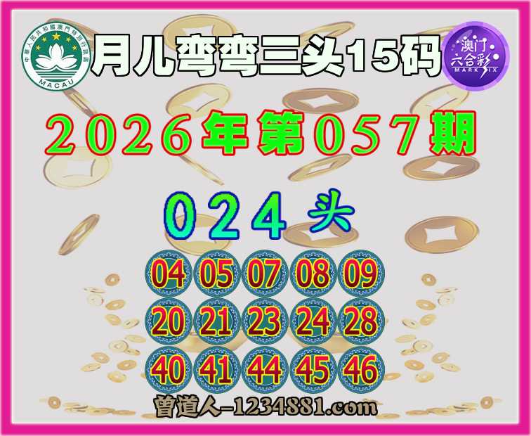 057期:『月儿弯弯』 ♠️三头15码♠️【024头】开:23准