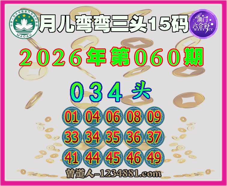 060期:『月儿弯弯』 ♠️三头15码♠️【034头】开:09准
