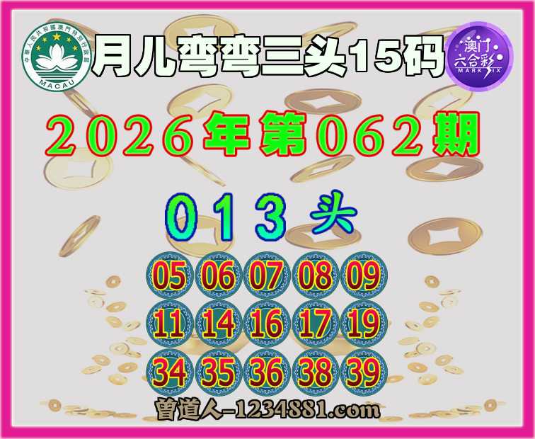 062期:『月儿弯弯』 ♠️三头15码♠️【013头】开:00准